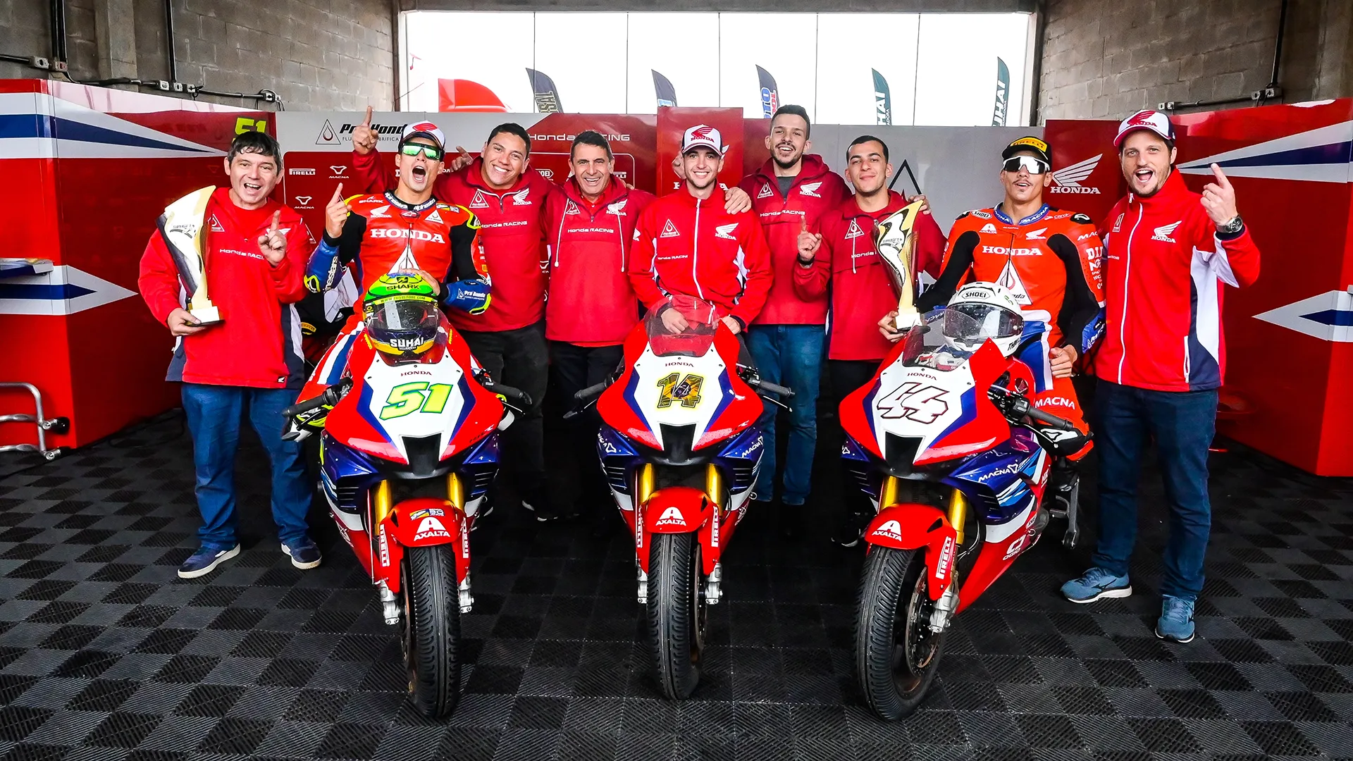 A equipe Honda Racing de Motovelocidade é patrocinada por Pro Honda, Honda Seguros, DID, NGK, Ogio, Pirelli, Macna e Axalta.
